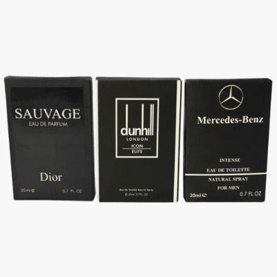 Introducing our trio of captivating pocket perfumes: Dior Sauvage, Dunhill London, and Mercedes-Benz. Each fragrance embodies sophistication and masculinity, ensuring you exude confidence and allure wherever you go. Here’s what makes each scent in this collection truly exceptional:
