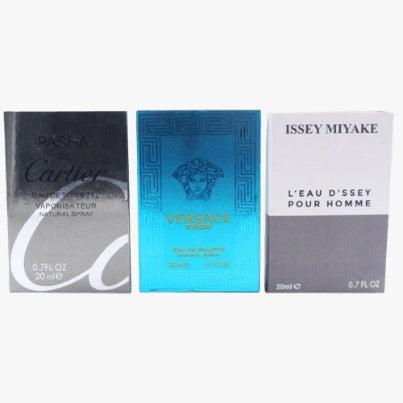 Introducing our exclusive pack featuring three captivating pocket perfumes: Pasha de Cartier, Versace Eros, and Issey Miyake. Each fragrance is a masterpiece designed to evoke sophistication and charm, ensuring you leave a lasting impression wherever you go. Here’s what makes each scent in this collection truly remarkable: