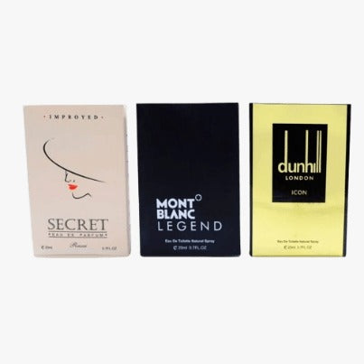 Introducing our exquisite pack featuring three captivating pocket perfumes: Secret, Mont Blanc Legend, and Dunhill London. Each fragrance embodies sophistication and allure, making them essential companions for any occasion. Here’s what makes each scent in this collection truly exceptional:
